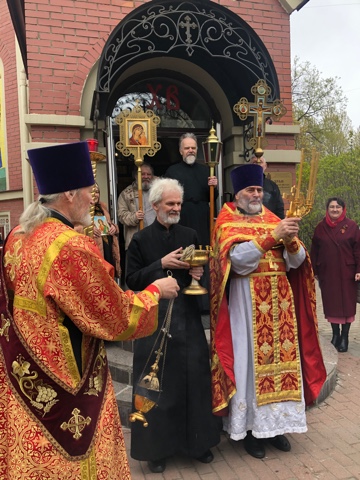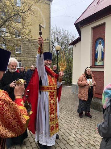 Церковь продолжает праздновать Пасху Христову. В завершение Божественной Литургии был совершен Крестный ход вокруг храма. Во время остановок читались зачала из Евангелия и звучали радостные возгласы «Христос воскресе!», а молящихся окропляли святой водой.