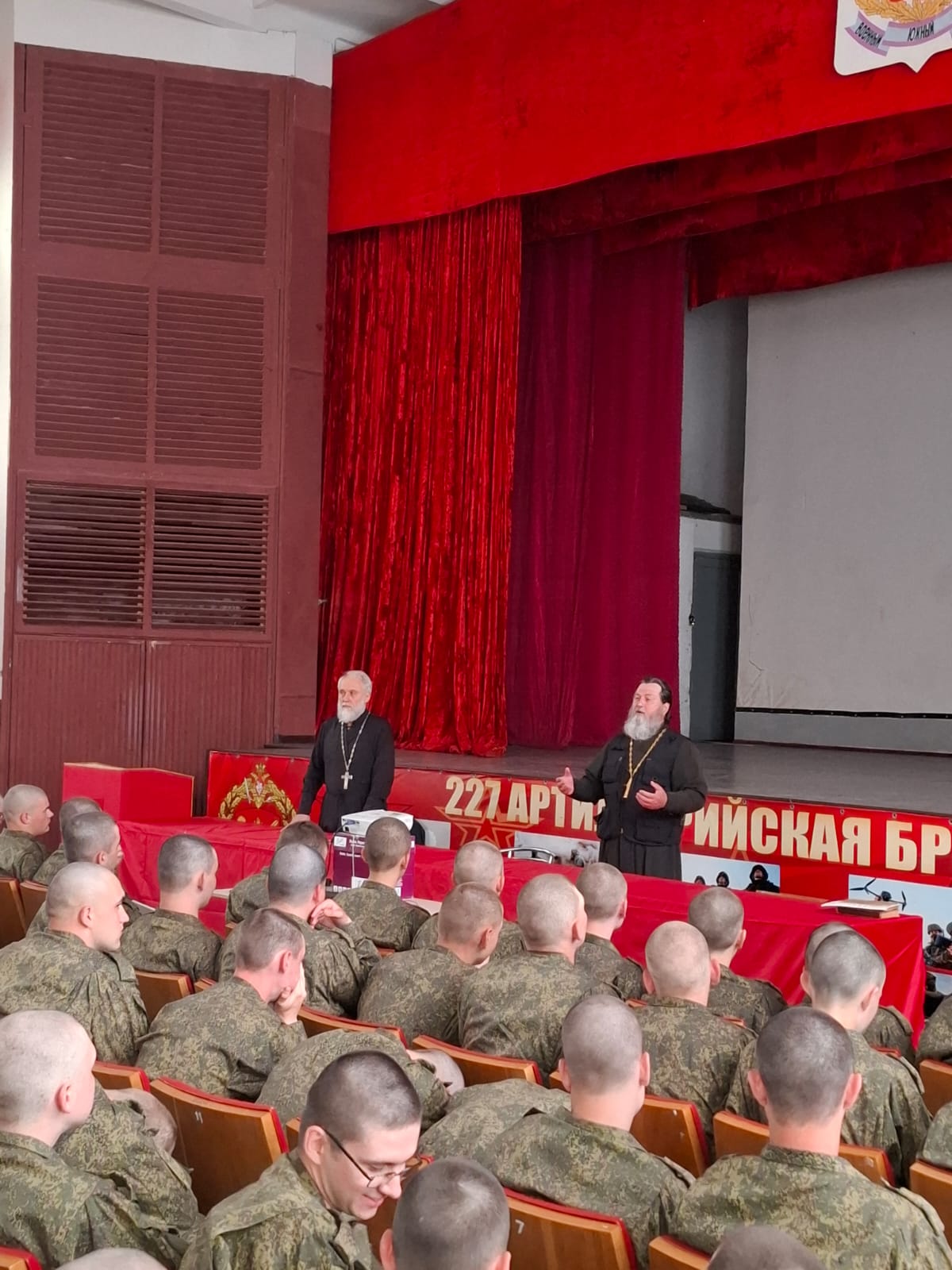 11 мая 2025 года, настоятель храма иконы Божией Матери «Неопалимая Купина» протоиерей Георгий Сычев совместно с настоятелем воинского храма Архистратига Божия Михаила, бригадным священником, иереем Николаем Хатаговым провели занятия с новобранцами боевой 227-й Майкопской артиллерийской бригады. В занятие со священниками приняло участие 300 военнослужащих.