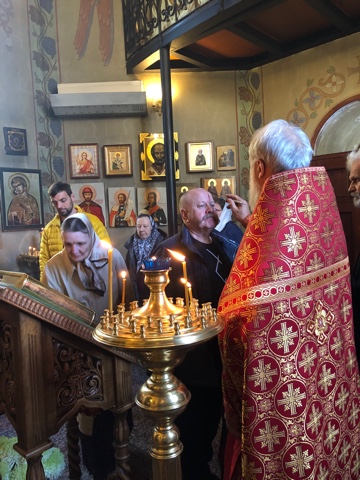 На утрене Всенощного бдения, после чтения Евангелия, настоятель помазал духовенство и прихожан освященным елеем.