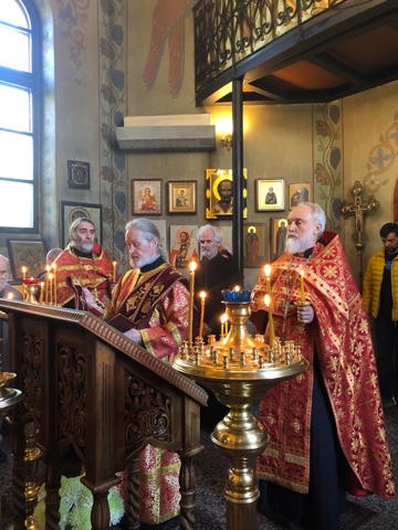 Богослужение возглавил настоятель храма протоиерей Георгий Сычев. Ему сослужил иерей Виктор Шкваря. Диаконский чин: протодиакон Владимир Чепурнов.
