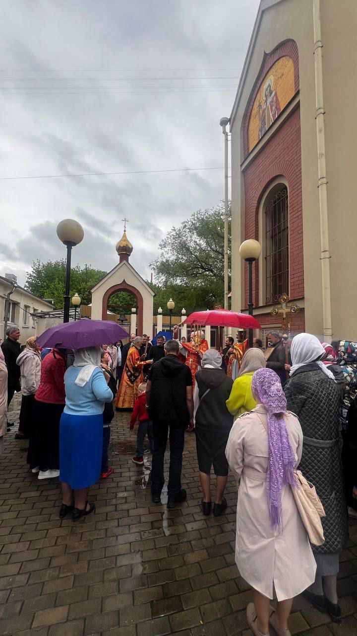 По завершении Божественной Литургии духовенство и все молившиеся на службе обошли храм крестным ходом, во время которого пелись пасхальные песнопения, а верующих окропляли святой водой.